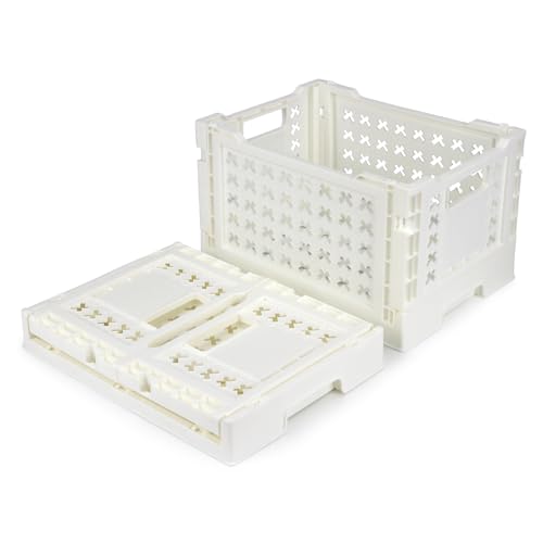 Spesh 2 Pcs Collapsible Crates Storage Boxes Plastic Foldable Crates Stackable Storage Baskets for Home Kitchen Office(White, 38x28x23cm)