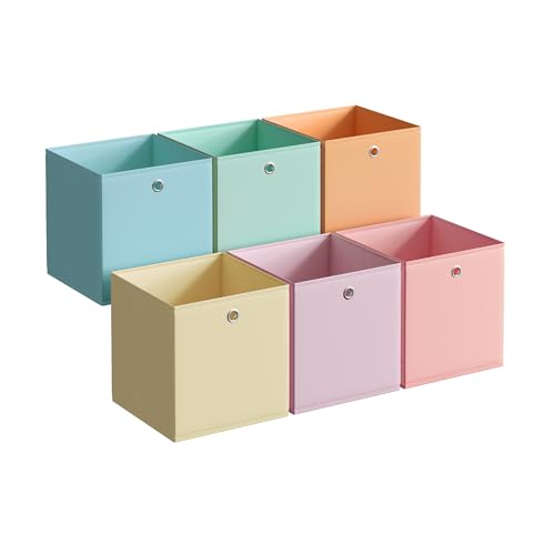 SONGMICS Storage Cubes, Set of 6 Collapsible Storage Boxes, 26 x 26 x 28 cm, Fit Cube Storage Unit, Rainbow Storage Bins, Colourful Fabric Bins for Bedroom, Living Room RFB226X01