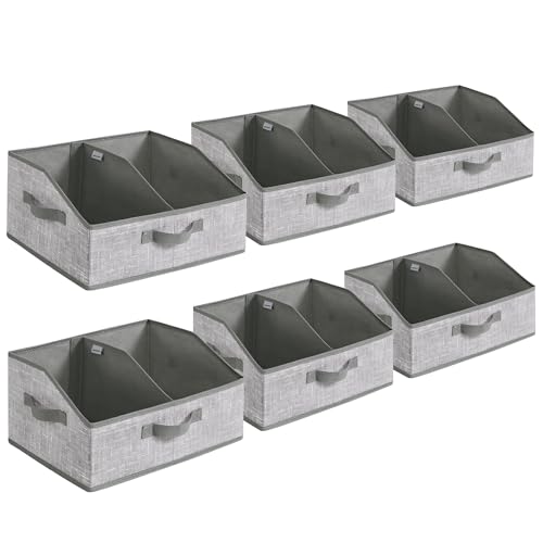 SONGMICS Collapsible Storage Boxes, Set of 6 Fabric Storage Baskets, 40 x 30 x 20 cm, Wadrobe Storage Organisers, 3 Handles, for Bedroom, Living Room, Cattail Grey RFB0140G01