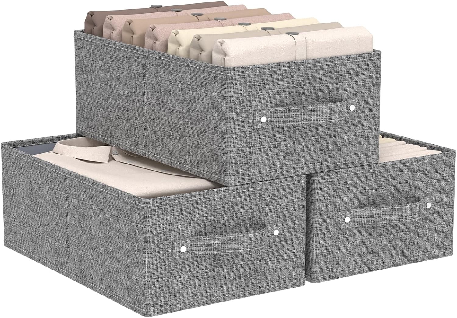 GRANNY SAYS Large Storage Boxes with Lids, Pack of 3 Collapsible Storage Boxes, Wardrobe Box Organisers for Organising Clothes, Decorative Box Lidded, Fabric Basket with Handle, Grey