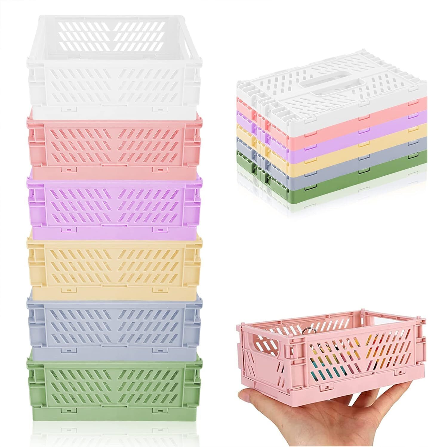 Lighterday 6pcs Collapsible Crates Storage Boxes,Plastic Stackable Storage Bask