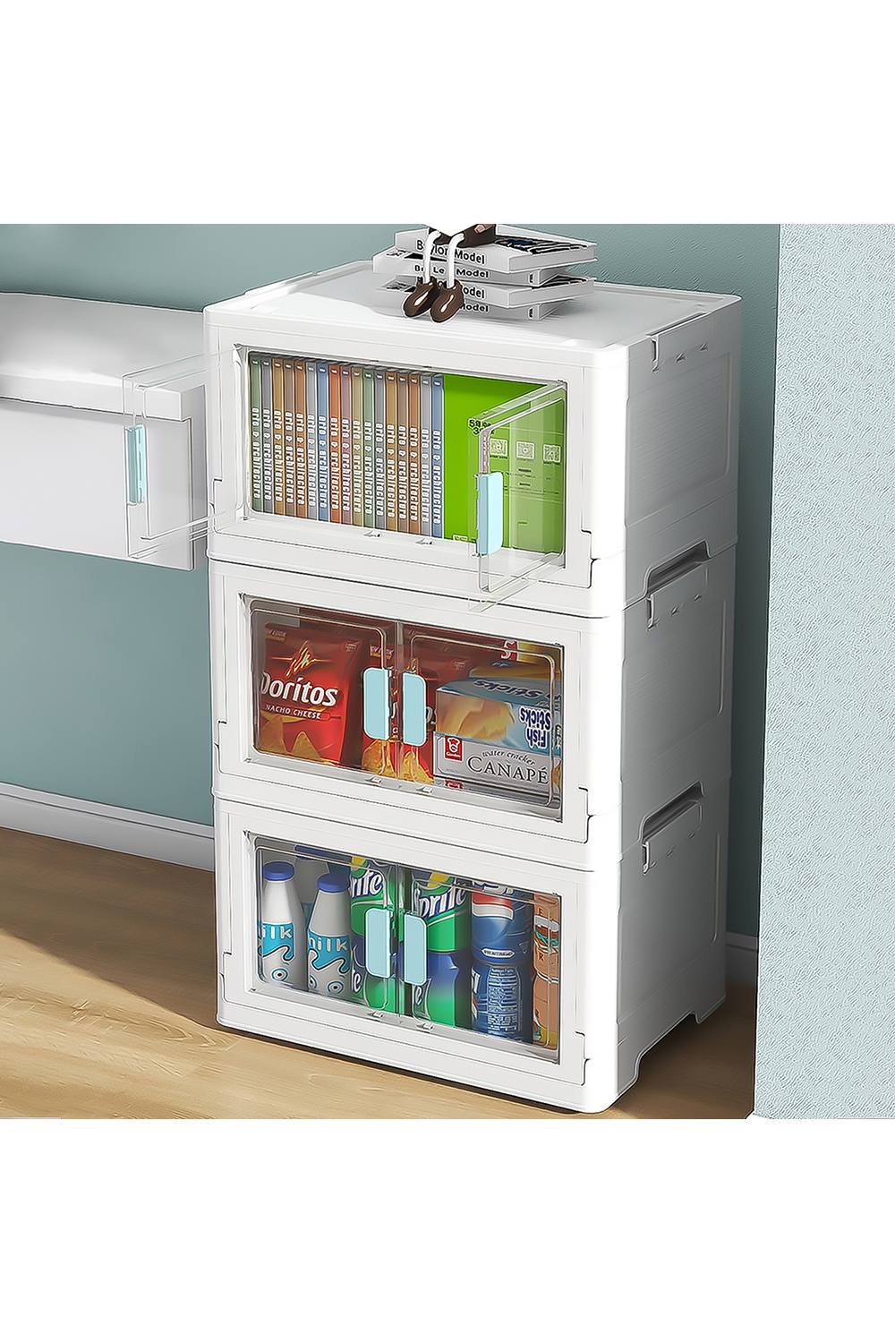 BTGGG 3 Pack Stackable Storage Boxes Large 50L*3 Foldable Collapsible Clear Storage Boxes Organizer 50 * 36 * 90cm, Front Door Opening for Easy Access, Movable Stacking Storage Box for Toys Clothes
