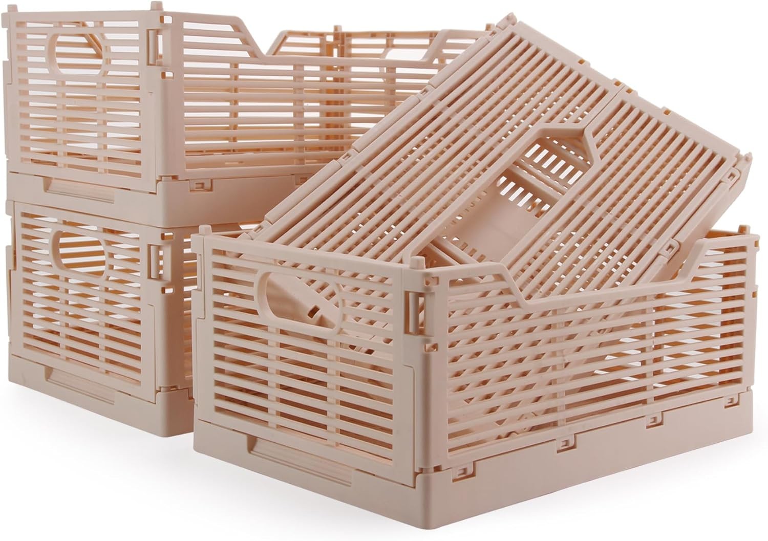 4-Pack Collapsible Storage Boxes, Foldable Plastic Crates for Storage Stackable