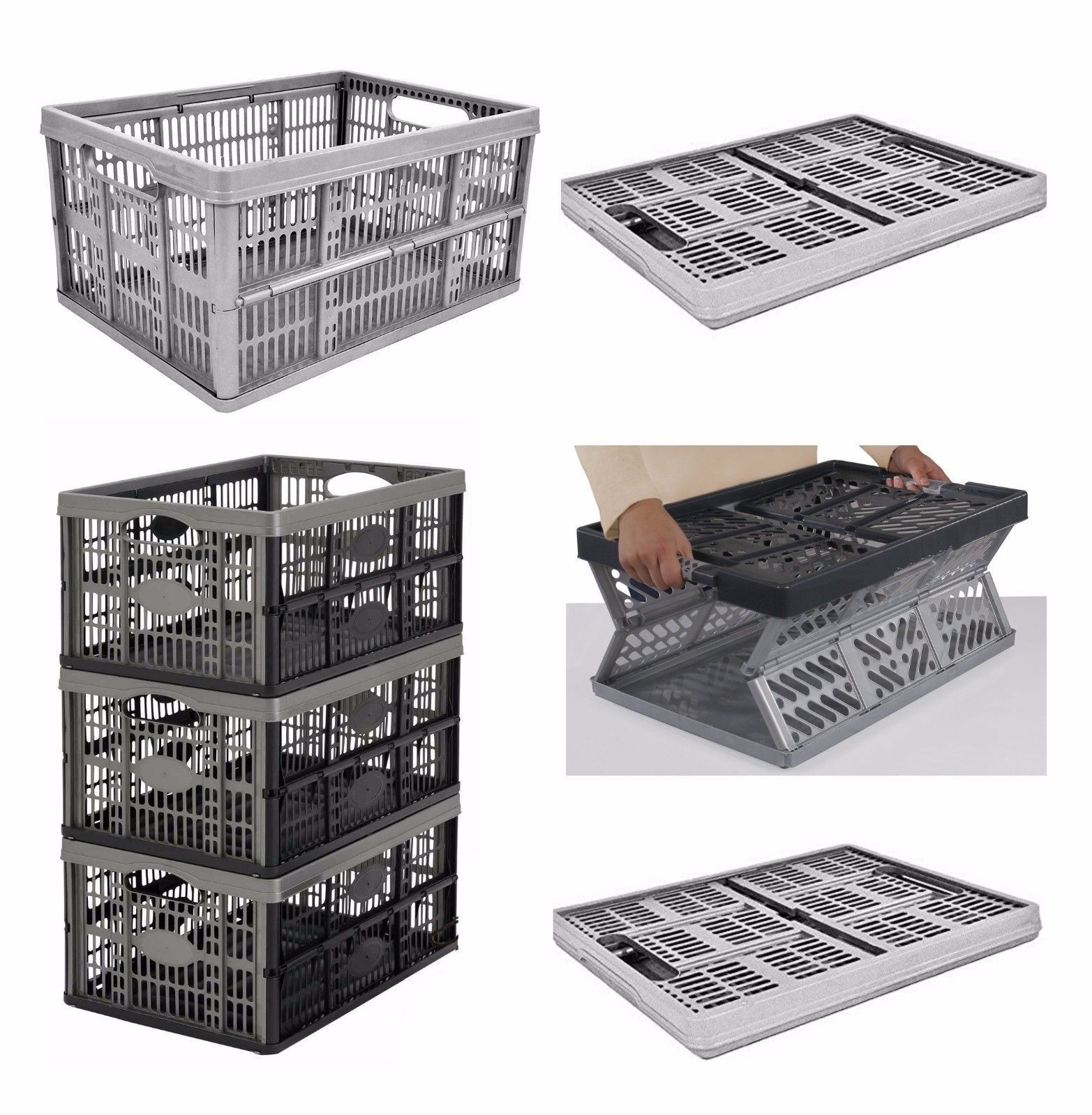 5X Grey Folding Crates Plastic Collapsible Storage Boxes Crates Stackable Boxes