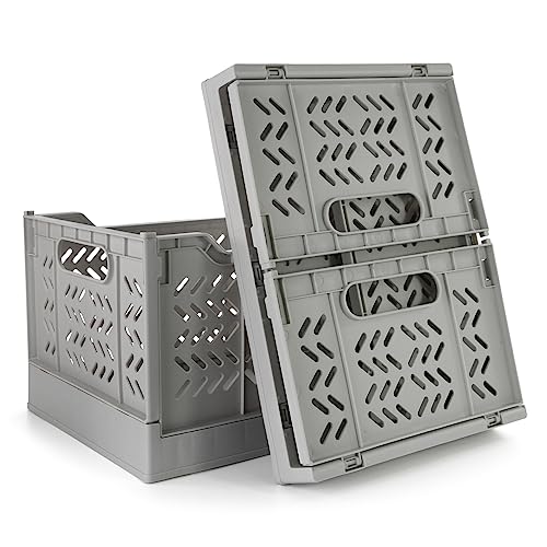 Volein 2 Pcs Collapsible Storage Boxes Stackable Plastic Storage Crates Large Foldable Baskets Collapsible Crates for Kitchen, Living Room, Bedroom(Grey)