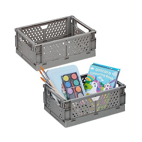Relaxdays 2X Collapsible Storage Boxes, Organisation Containers, Foldable Plastic Baskets, HWD: 10 x 25 x 26.5cm, Grey, 10 x 25 x 16.5 cm