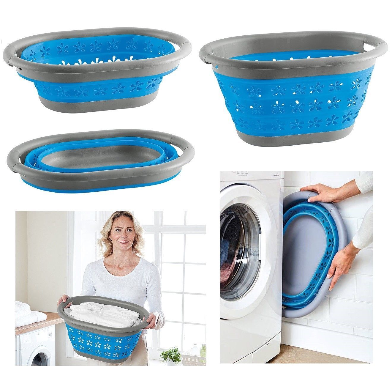 Collapsible Wash Basket-Round Collapsible Washing Basket Compact Sturdy New