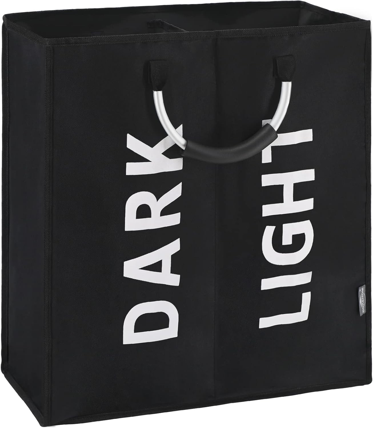 DOKEHOM 80L Large Collapsible Washing Laundry Basket Bag with 2 Sections for Bedroom, Fabric (Black)