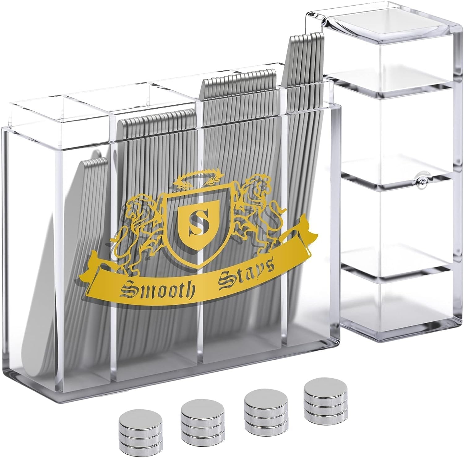 44 Quality Magnetic Stainless Steel Collar Stiffeners with 10 Collar Stays Magnets – 3 Sizes in a Divided Box