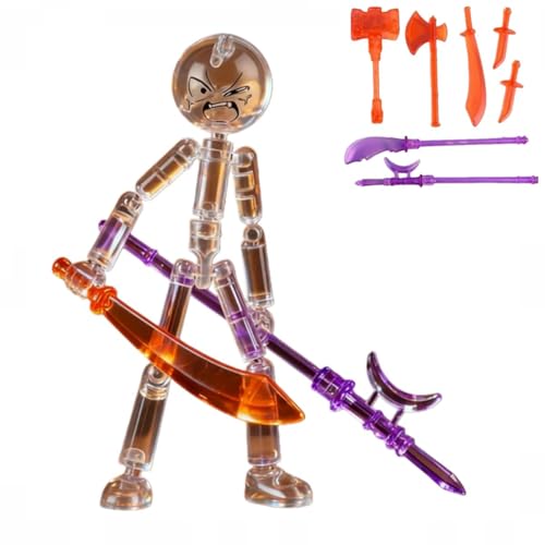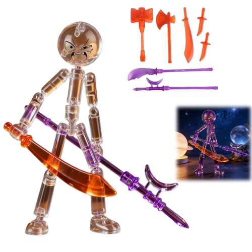 Collectable Action Figures Set with 7 Weapons Set, 12cm Transparent Jointed Stickman Action Figure, 2026 New Stop Motion Figures, Multi-Jointed Movable Robot, Requires Self-Assembly (Purple)