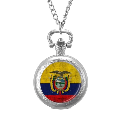 Vintage Colombiana Flag Ea-gle Men's Pocket & Fob Watches Analogue Display Quartz Watch with Chain for Birthday Christmas Father's Day Silver-Style