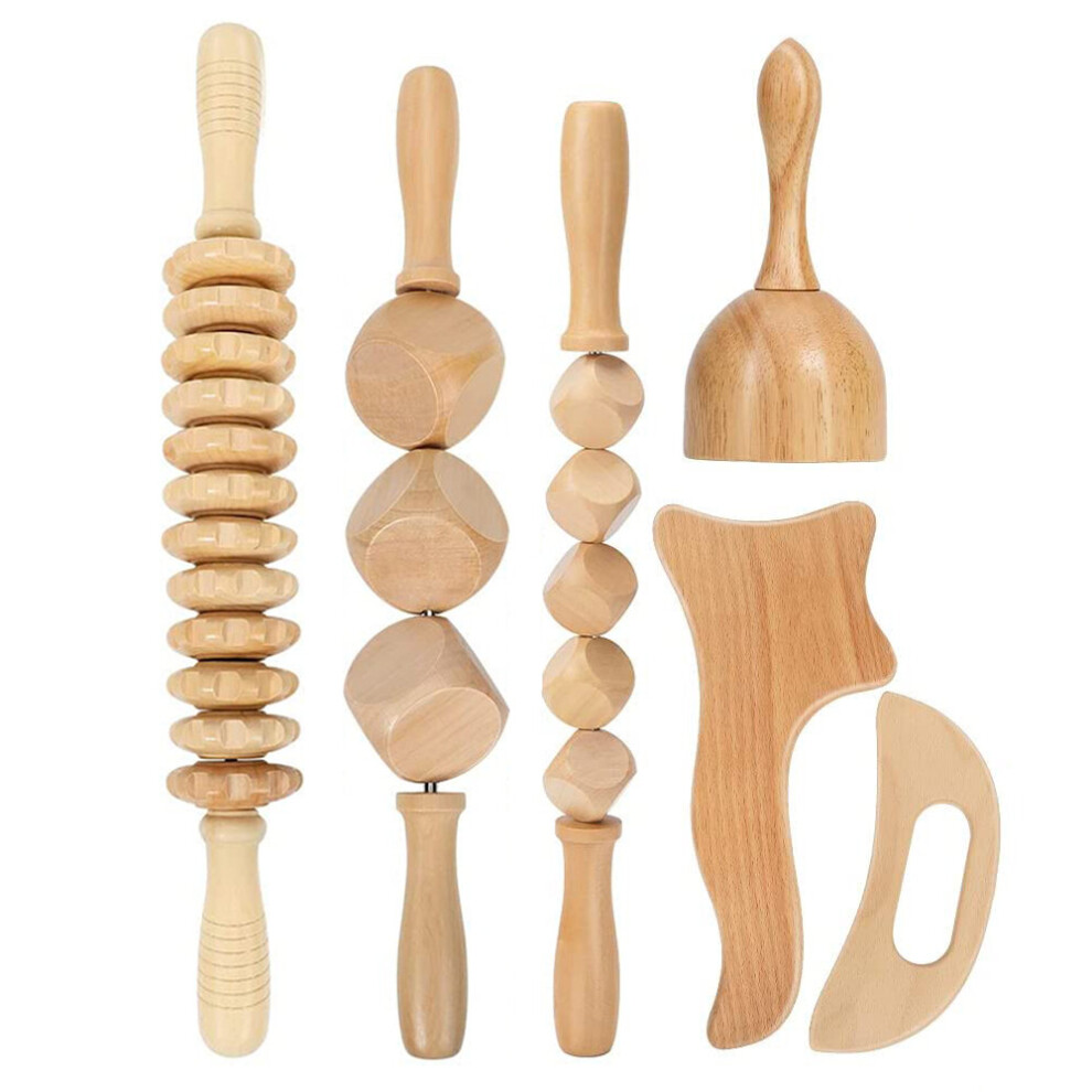 (a-6Pcs-Set Massager) Lymphatic Drainage Tool,Wood Therapy Massage Tools,Maderotherapy Colombiana,Wooden Massager for Anticellulite and Body Sculpting