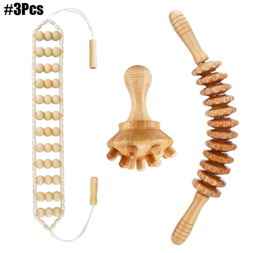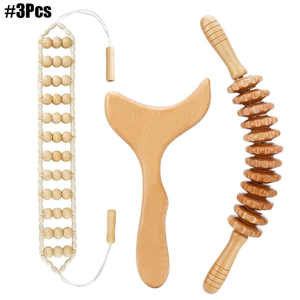 (a-3Pcs) Wood Therapy Massager Cup Anti-Cellulite Gua Sha Tool Maderoterapia Colombiana Lymphatic Drainage Trigger Point Massager Roller