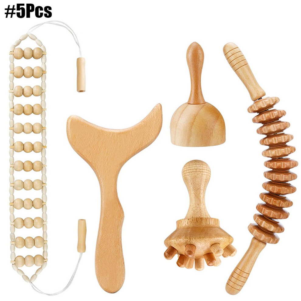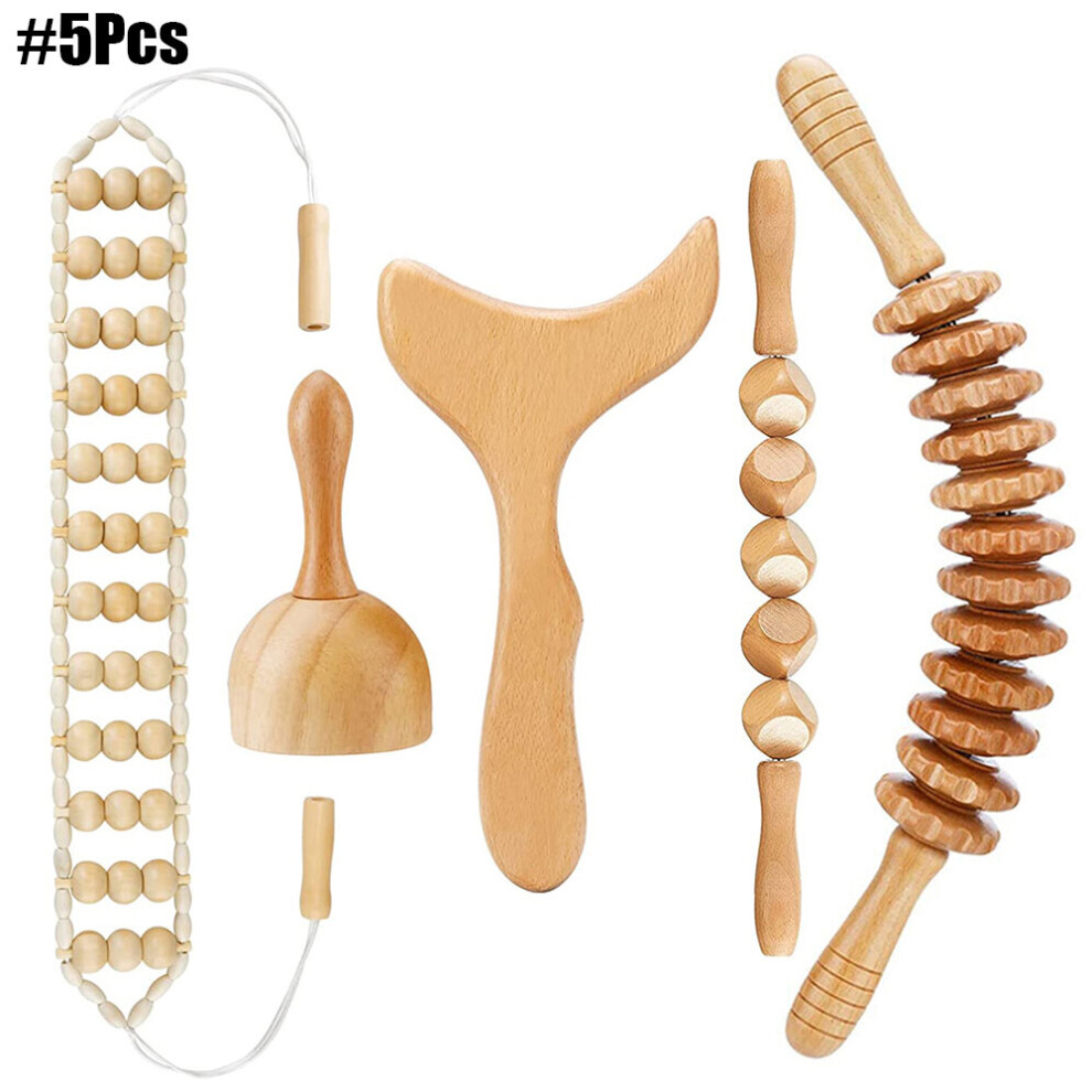 (a-5Pcs) Wood Therapy Massager Cup Anti-Cellulite Gua Sha Tool Maderoterapia Colombiana Lymphatic Drainage Trigger Point Massager Roller