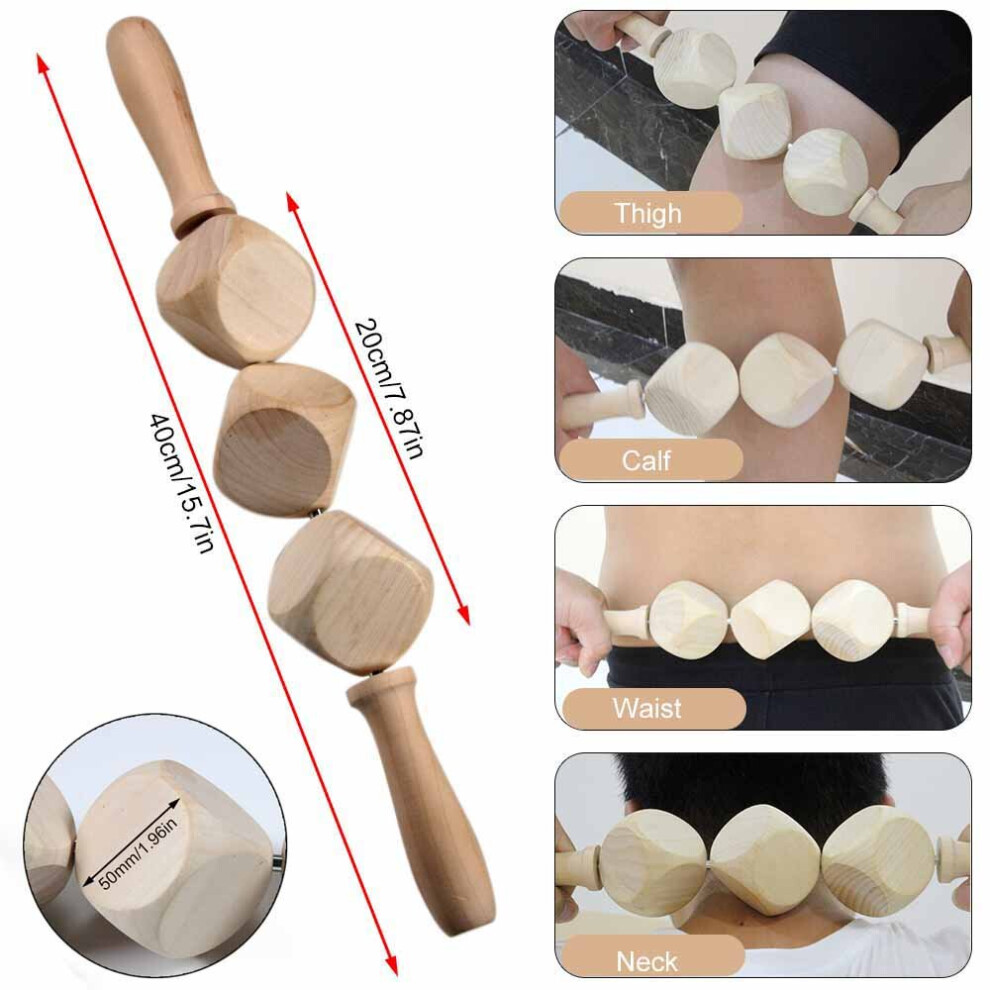 (a-B1) Handheld Wooden Massage Muscle Roller Stick Maderoterapia Colombiana Lymphatic Drainage Massager Anti-cellulite Body Pain Relief