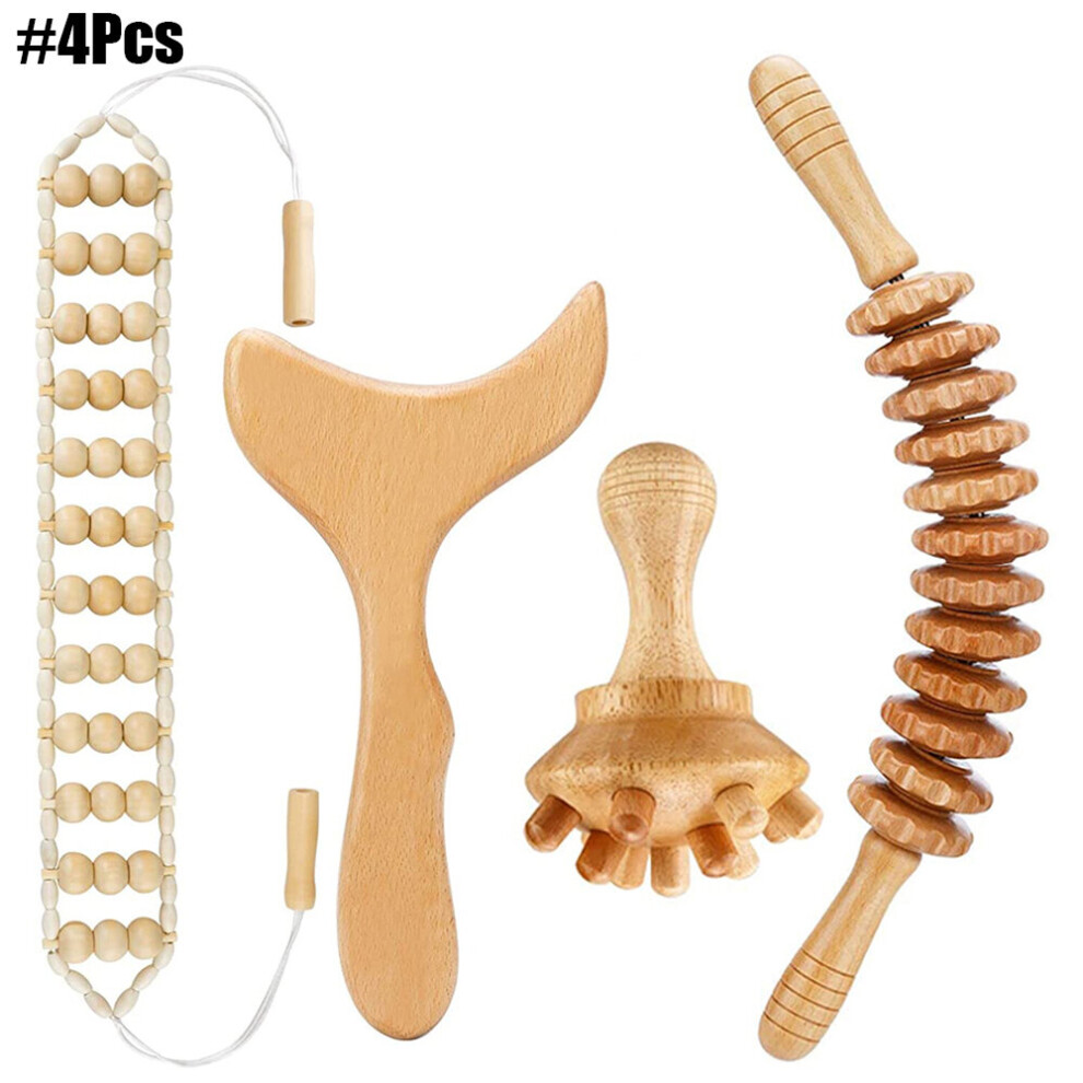 (a-4Pcs) Wood Therapy Massager Cup Anti-Cellulite Gua Sha Tool Maderoterapia Colombiana Lymphatic Drainage Trigger Point Massager Roller