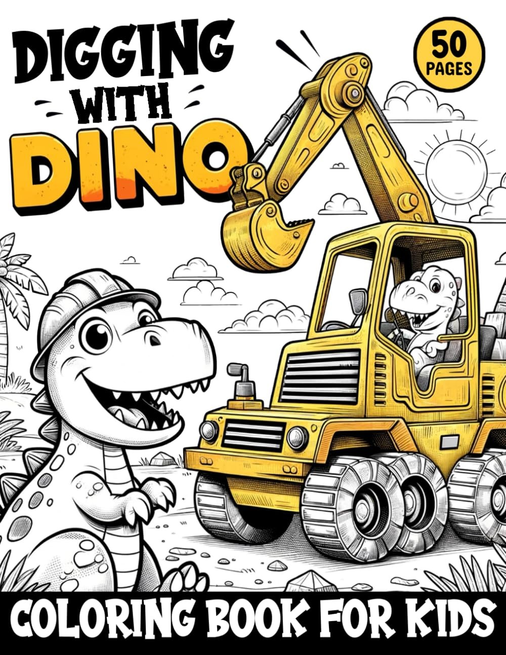 Digging with Dino Coloring Book for Kids: 50 Pages Of Dinosaur & Construction V