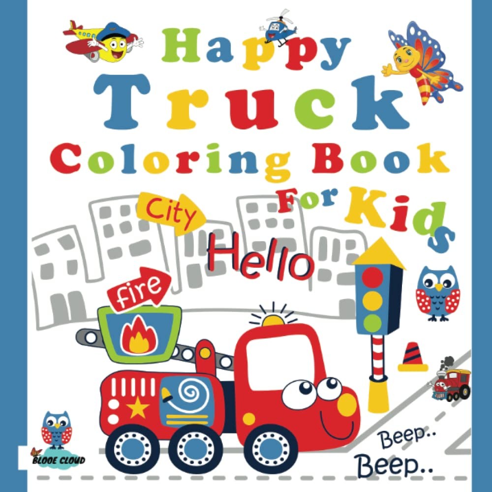 Happy Truck Coloring Book For Kids: 30 Cute And Unique Coloring Pages Designed