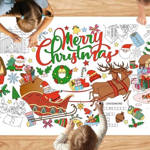 VARACL Christmas Giant Coloring Poster, Coloring Christmas Tablecloth for Kids, Jumbo Xmas Coloring Banner For Christmas Party Kids Activity, Large Coloring Pages For Christmas Party Games Supplies