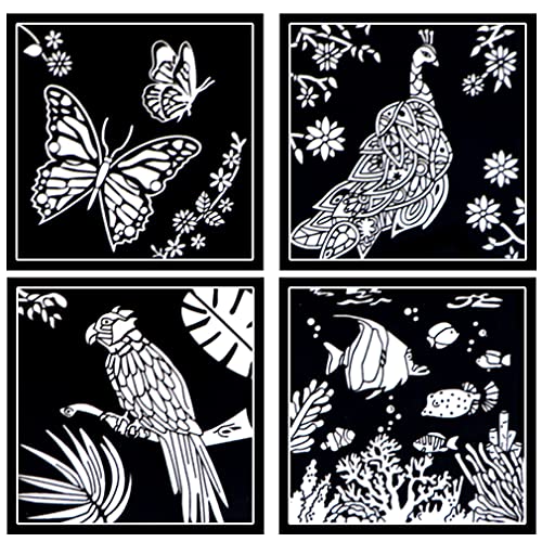 ENJOYART Velvet Coloring Cards - Craft Activity for Kids, Adults, Seniors, Alzheimer's - Animals - Stress Relieving Coloring Pages for Staying Zen (4 Pack)