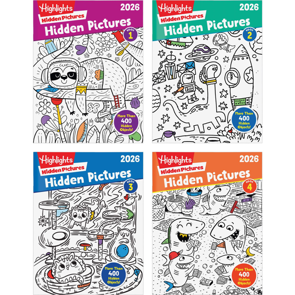 Highlights Hidden Pictures 2026 Activity Books for Kids Ages 6 and Up 4 Puzzle Books Packed with Hidden Object Fun Coloring Pages and Seek and Find