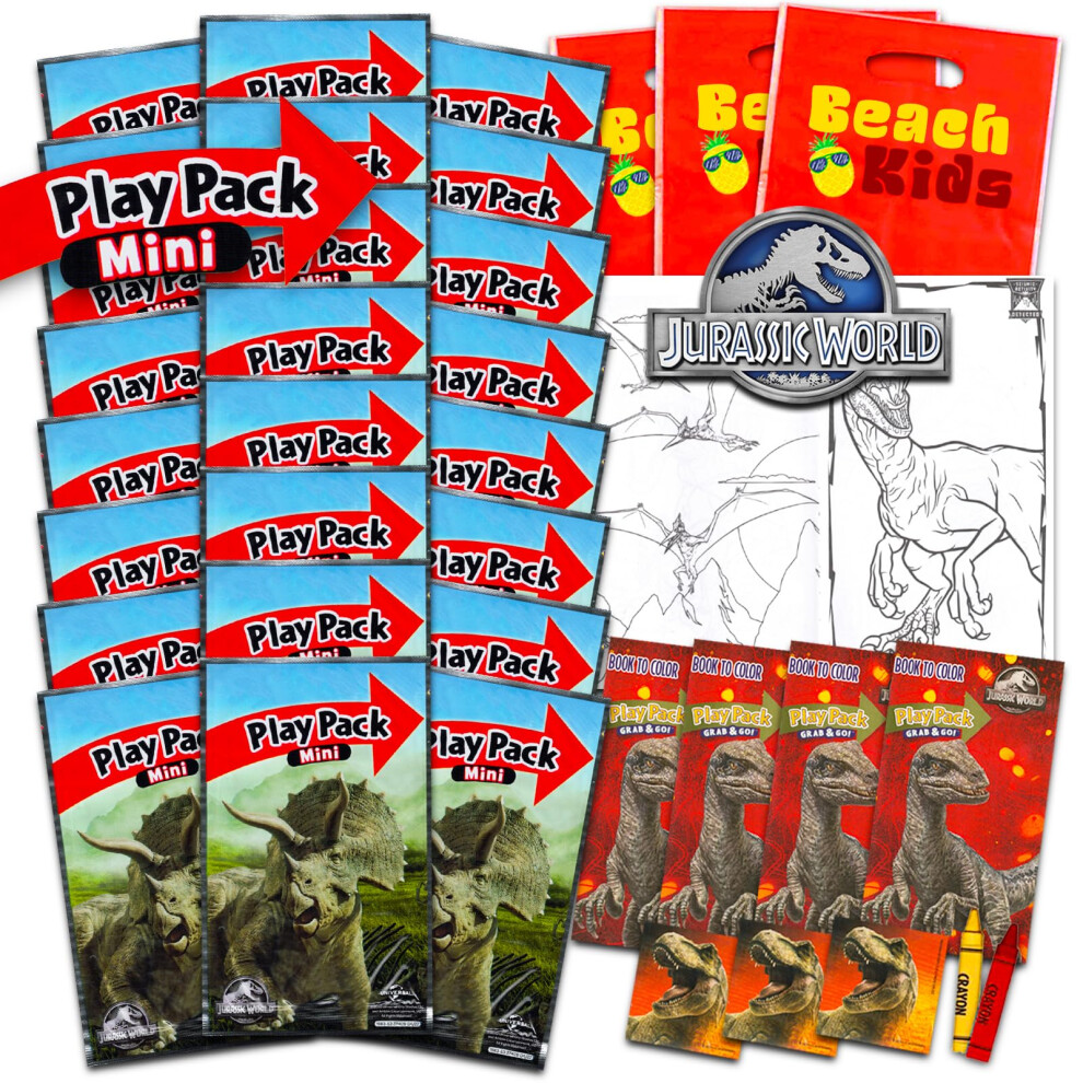 Jurassic World Mini Party Favors Set for Kids - Bundle with 24 Mini Jurassic Park Play Packs with Coloring Pages Stickers and More (Dinosaur T-Rex B