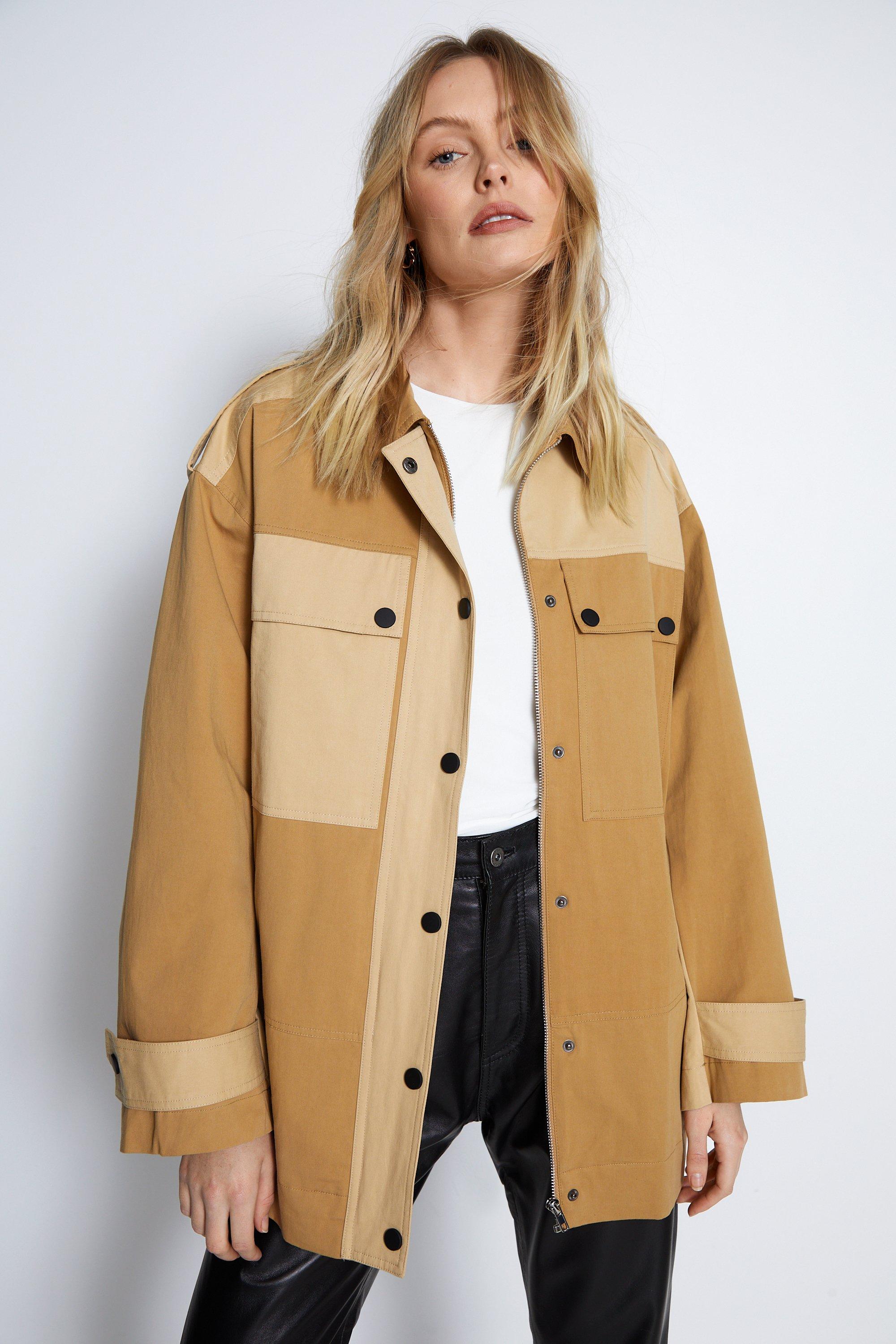 Nastygal Womens Panelled Colour Block Faux Leather Biker Jacket - Cream viscose - Size 6 UK
