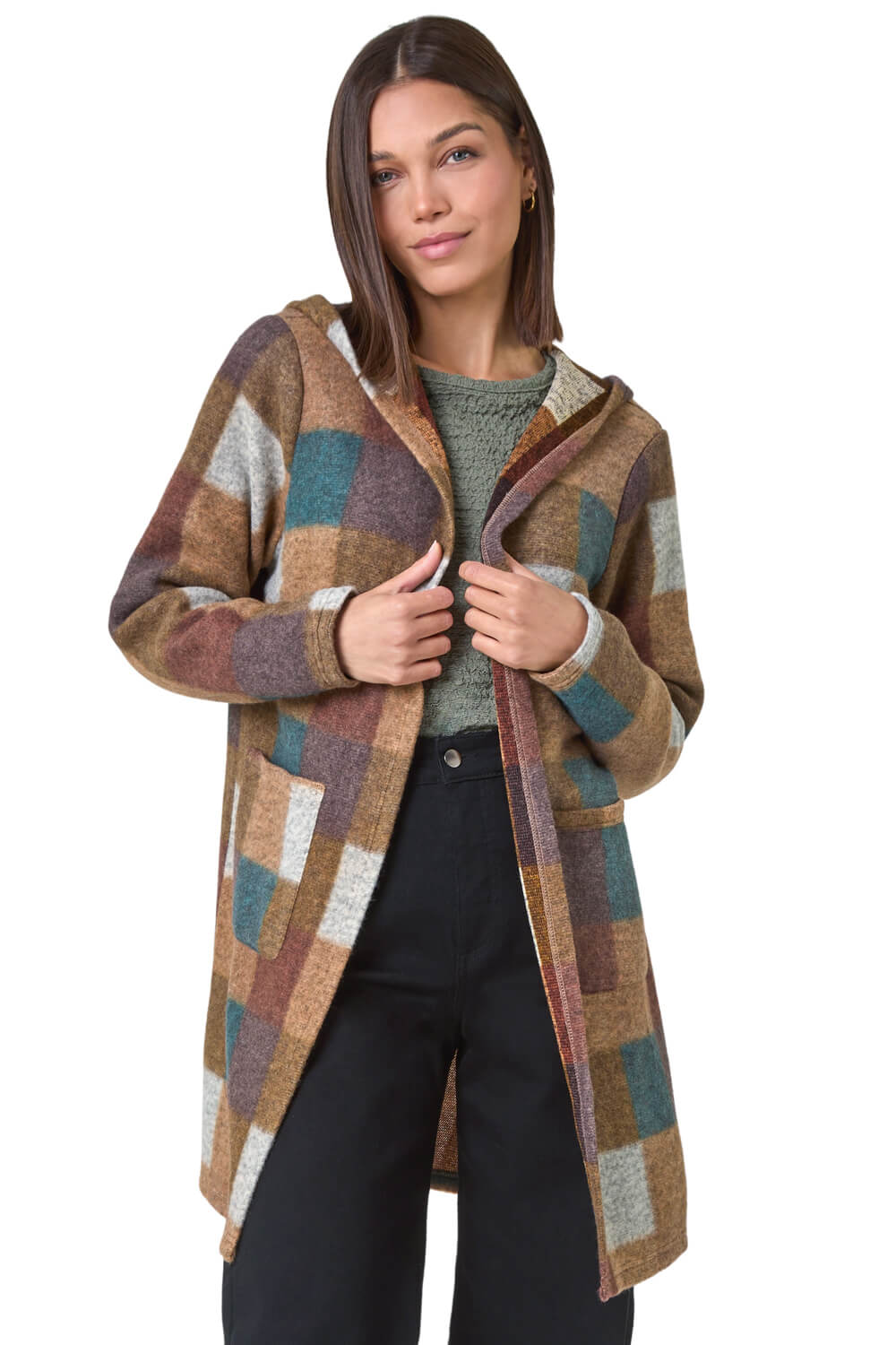 Roman Womens Colour Block Faux Longline Hooded Jacket - Brown - Size 10 UK