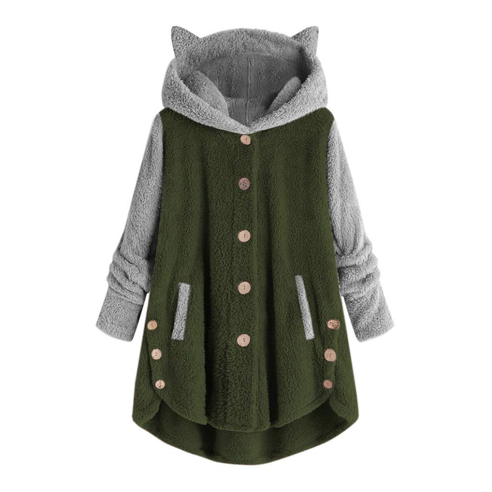 Plush Jacket Women's Oversize Hoodie Warm Lined Fleece Coat Teddy Bear Style Colour Block Green 3XL With Pockets