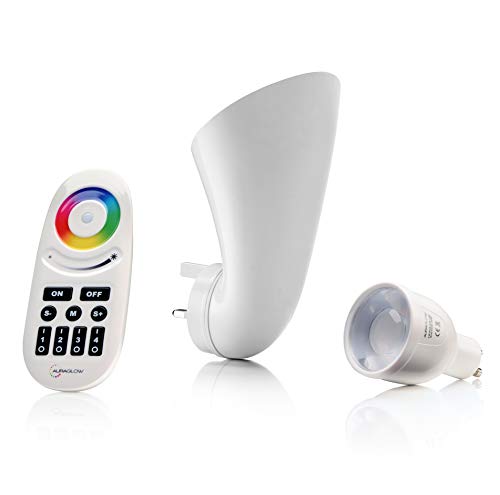 Auraglow Plugin GU10 Spotlight Uplighter Wall Wash Light Plug Socket Lamp with Colour Changing LED Bulb & Remote