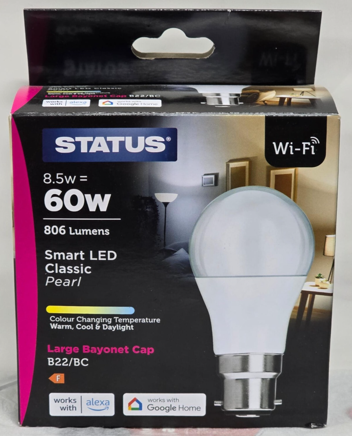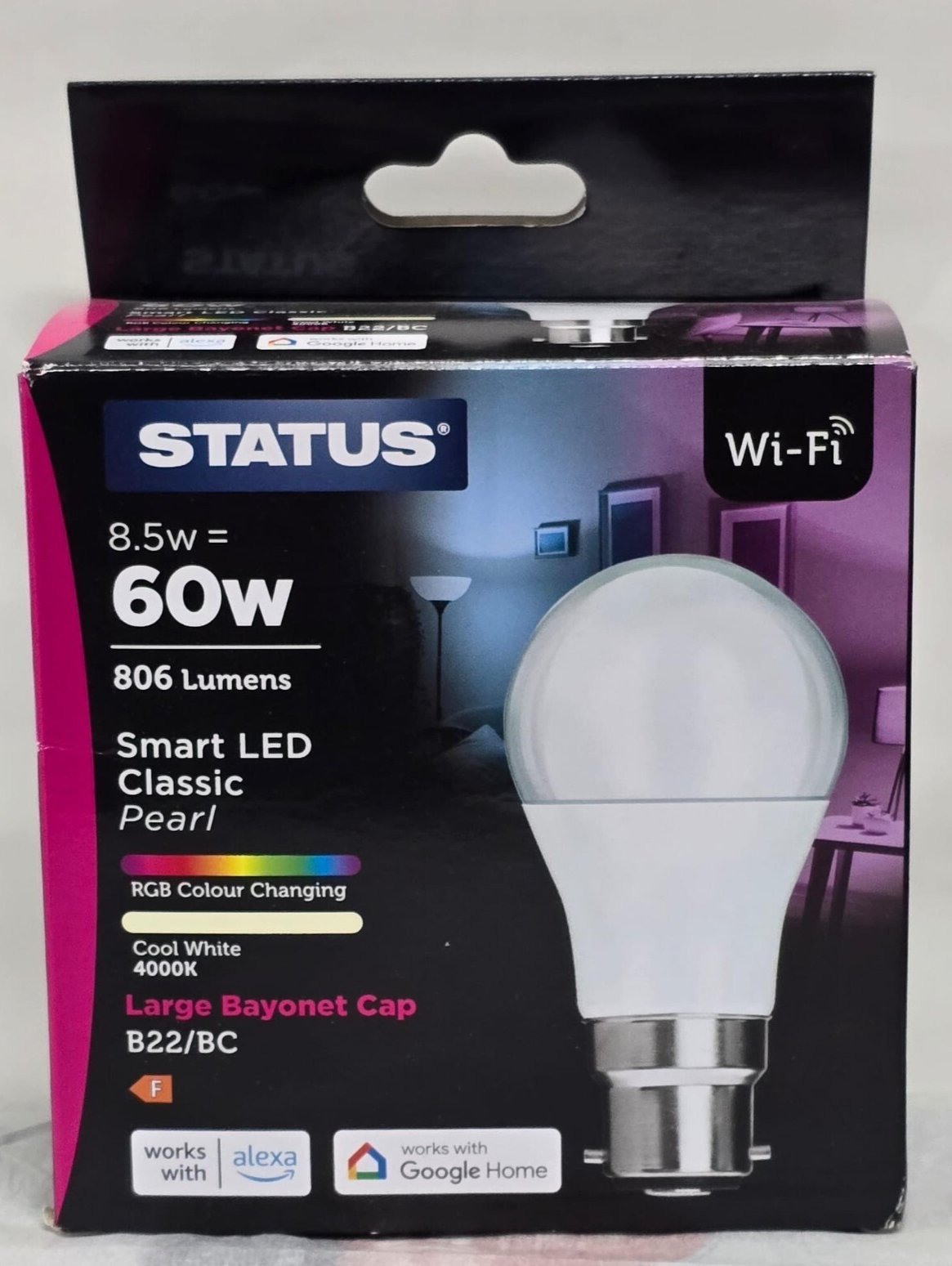 STATUS Smart LED Colour Changing Light Bulb - Alexa & Google Home - 8.5w=60w