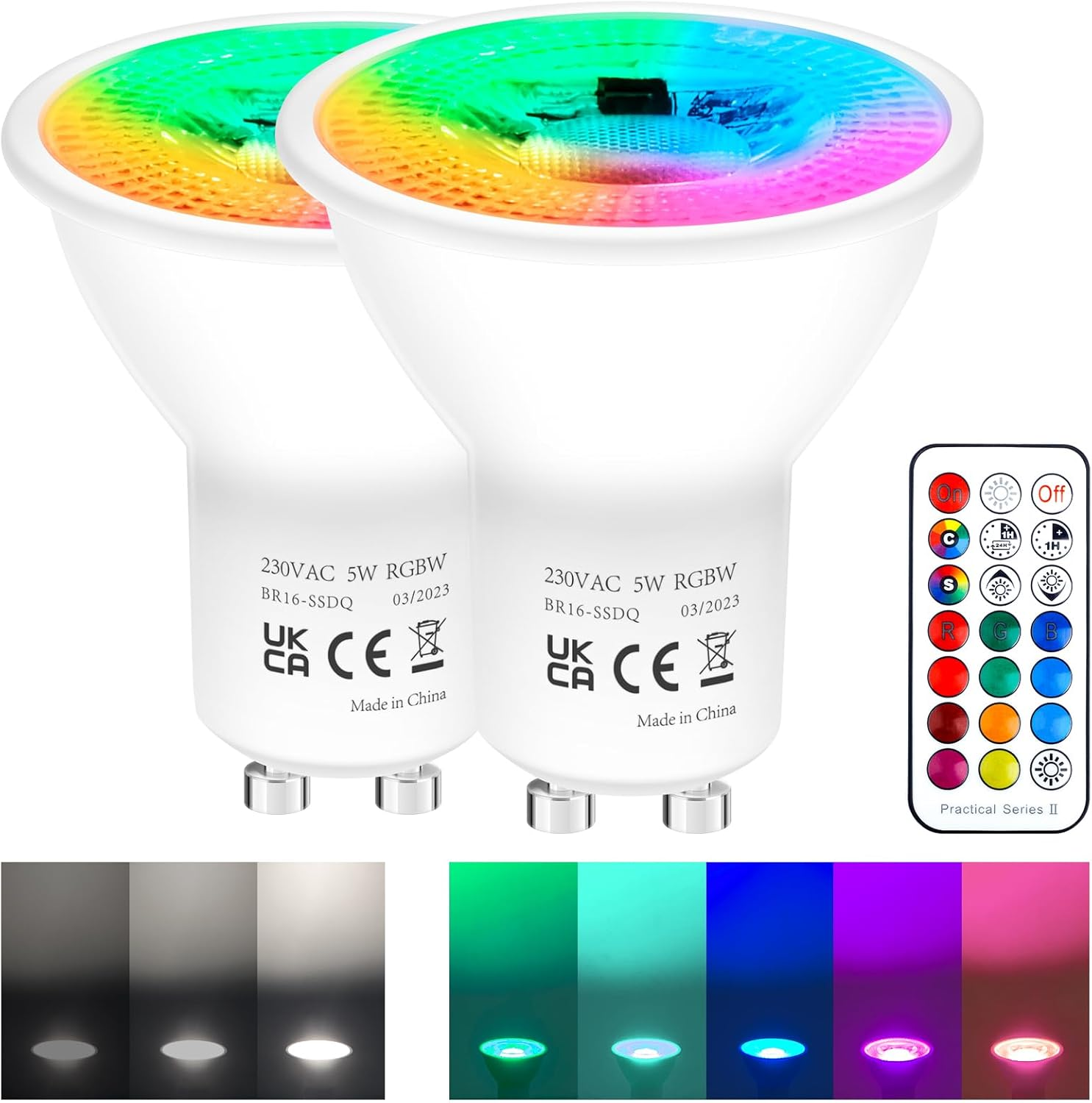 REYLAX GU10 LED Bulbs Dimmable Cool White 5W Colour Changing Light Bulb with Rem