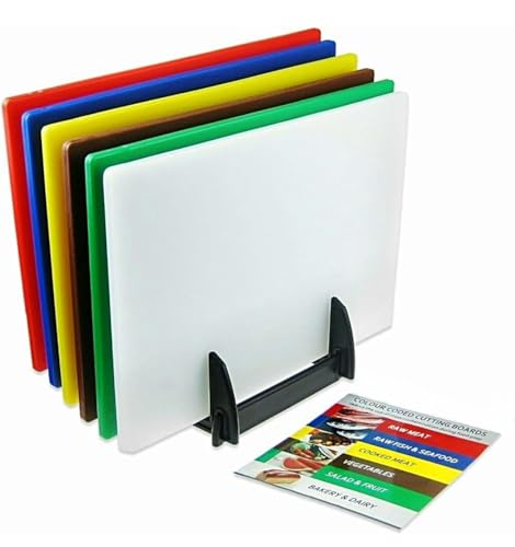 Catering Chopping Boards Set of 7 Colour Coded with Rack & Chart 455 x305 x10mm