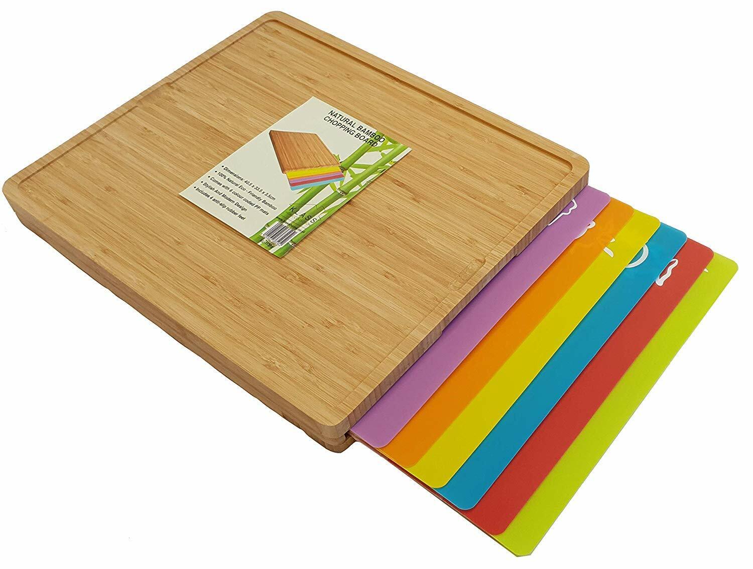 Seville Classics Bamboo Cutting Board with 7 Colour Coded Chopping Mats