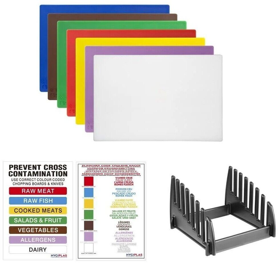 Hygiplas Colour Coded Chopping Board Set with Rack & Wall Chart 6 Pieces