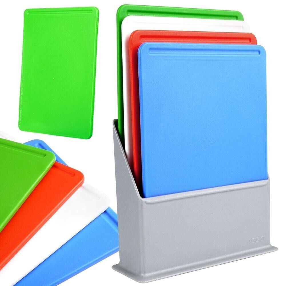 4 X Chopping Boards Set Plastic Colour Coded Meat Fruit Small Cutting Mats Stand