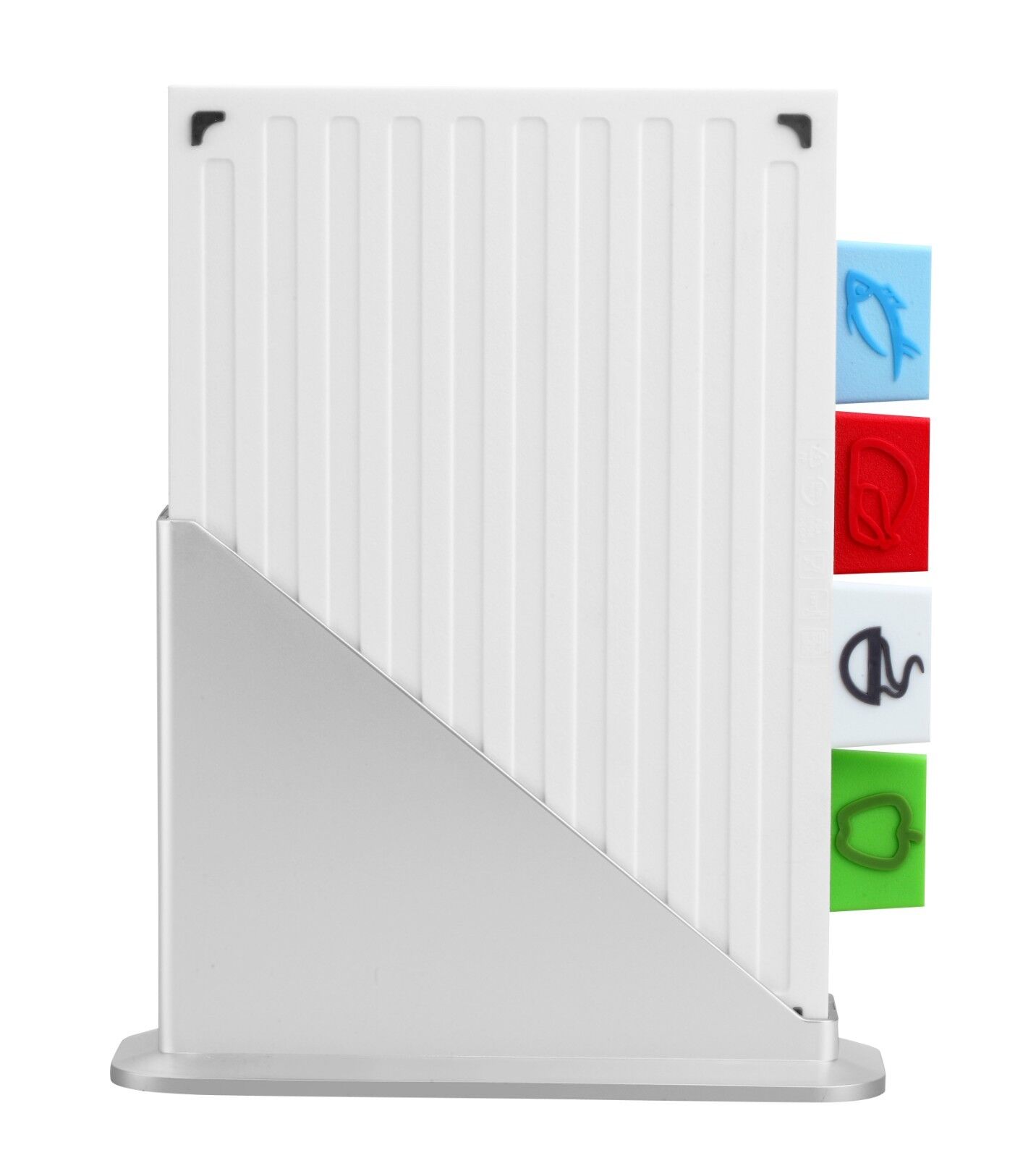 Blackmoor 68239 Chopping Board Set of 4 / Grey Index Chopping Boards with Stand for Kitchen/Colour Coded Tabs for Cutting Meat, Fish, Fruit, Vegetables and More