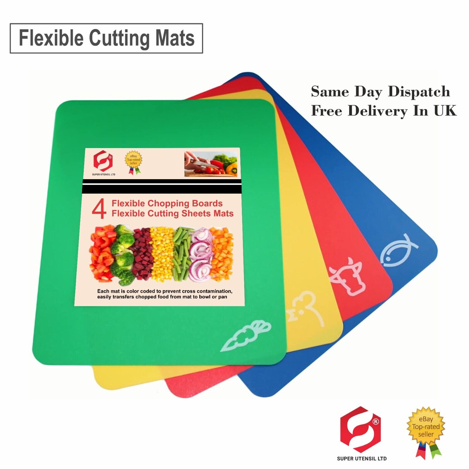 4 PACK Flexible Chopping Boards Flexi Food Cutting Sheet Mats Coloured Coded