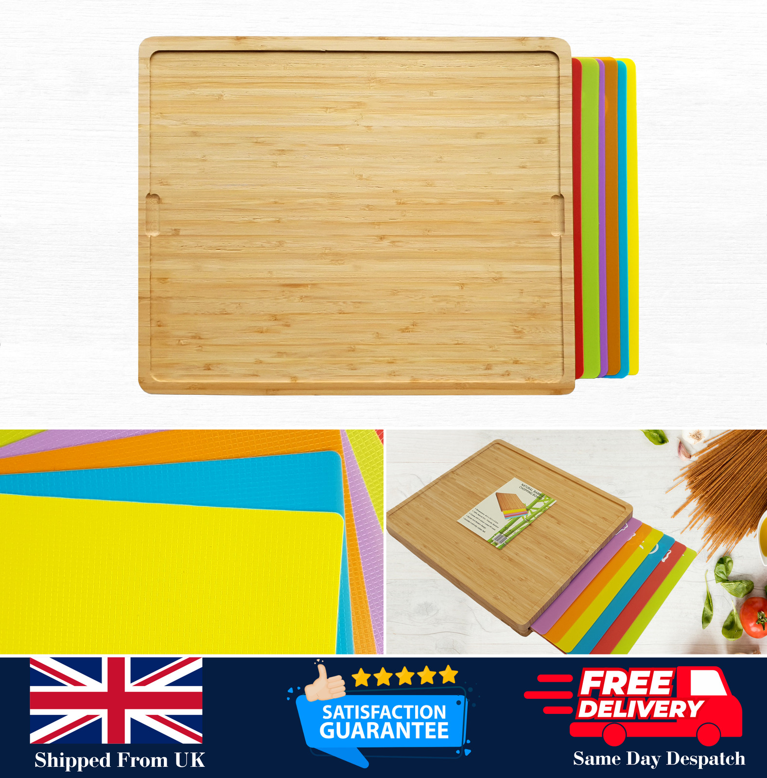 Wooden Cutting Board with 6 Plastic Colour-Coded Chopping Mats
