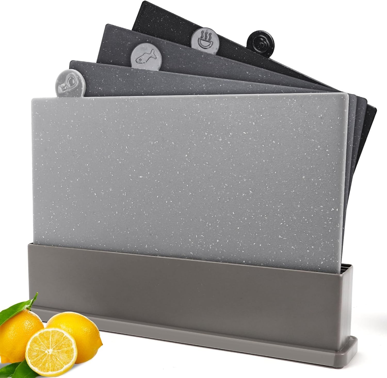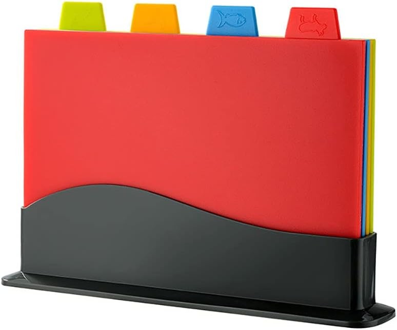 Myiosus Chopping Board Set, 4pcs Colour Coded Boards for Black