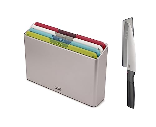Joseph Joseph Index - Set of 4 Colour Coded Chopping Board Set with Storage Case - Large, Graphite