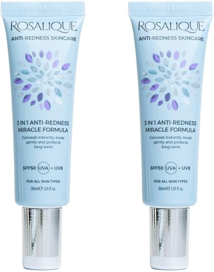 Rosalique 3 in 1 Anti-Redness Miracle Formula Colour Corrector SPF50 for Hypersensitive and Redness Prone Skin, Suitable for All Skin Types 2 x 30 ml
