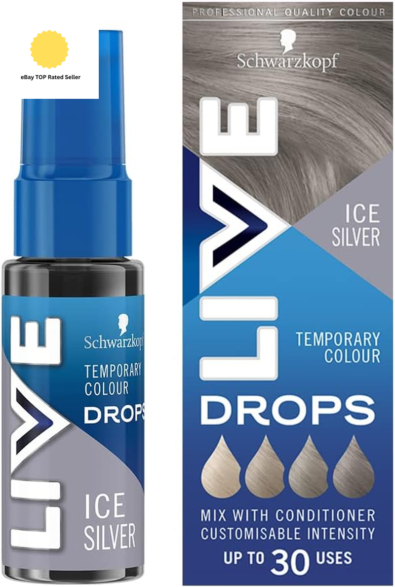 Schwarzkopf LIVE Colour Drops Ice Silver Temporary Hair Dye, 30ml, for Colour that Lasts 2-12 Washes, Silver Hair Dye