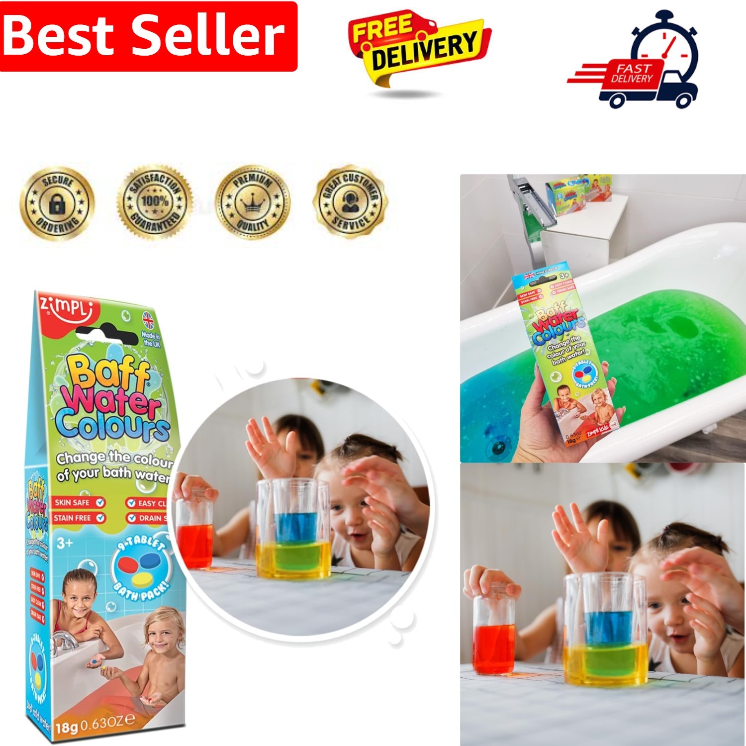 ZIMPLI - 9 Use Baff Water Colours, Colour Changing Bath Drops, Colour Tabs, Lea