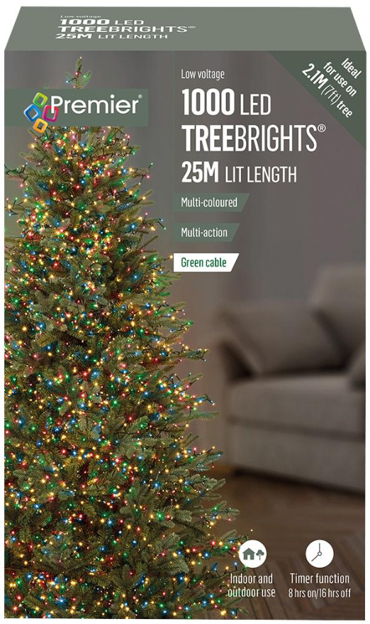 Premier 37.2m Multi Action 3000 Multi Coloured LED Cluster Christmas Lights with Timer