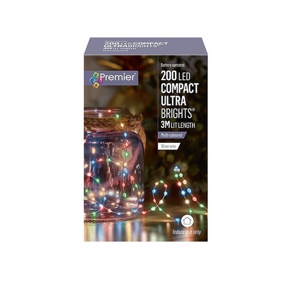 Multi Coloured LED Lights Christmas Light 200 Compact Ultrabright Silver Wire 3m