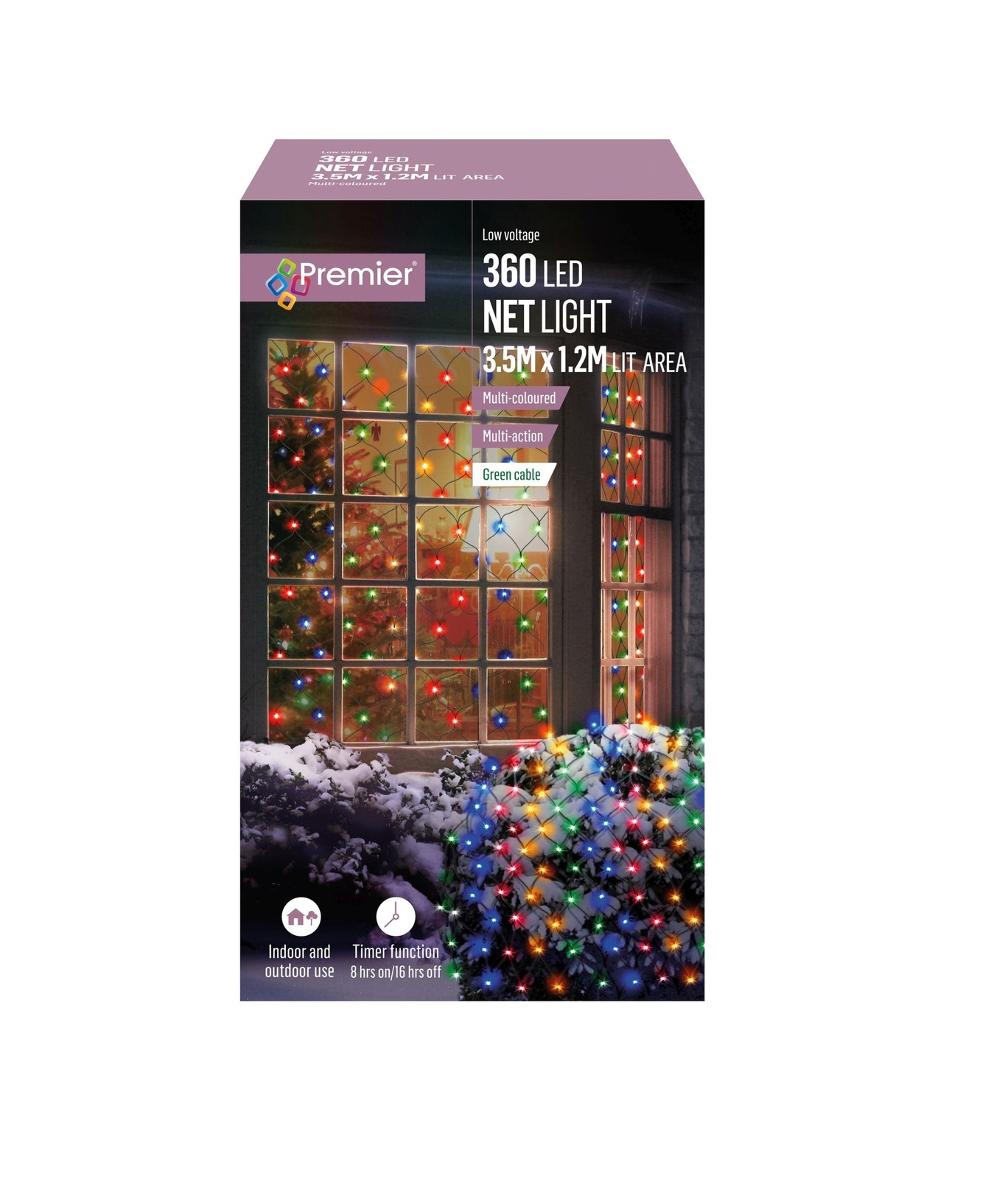 Multi Coloured Christmas Window Net Lights 360 LED 3.5M x 1.2M Multi Action LEDs