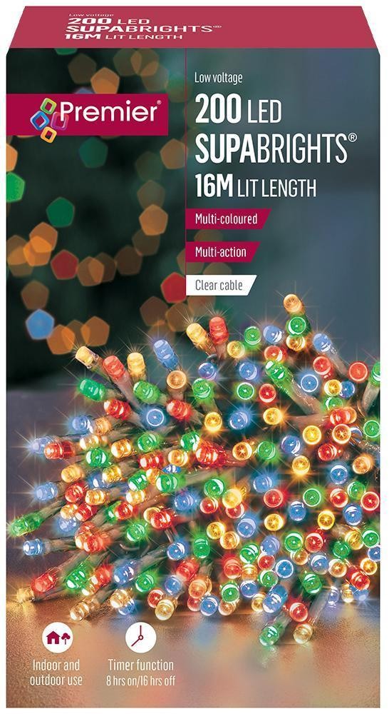 200 LED Multi-Coloured String Christmas Lights with Timer, 15.9 metres
