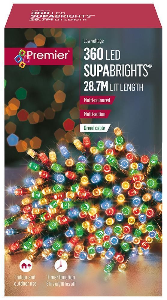 360 LED Multi-Coloured String Christmas Lights with Timer, 28.7 metres