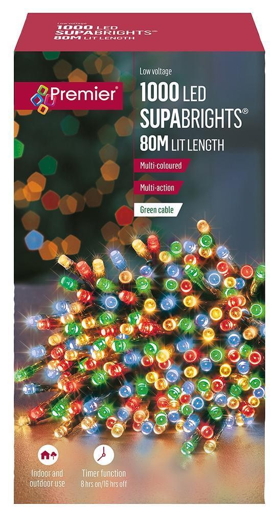 1000 LED Multi-Coloured String Christmas Lights with Timer, 79.9 metres